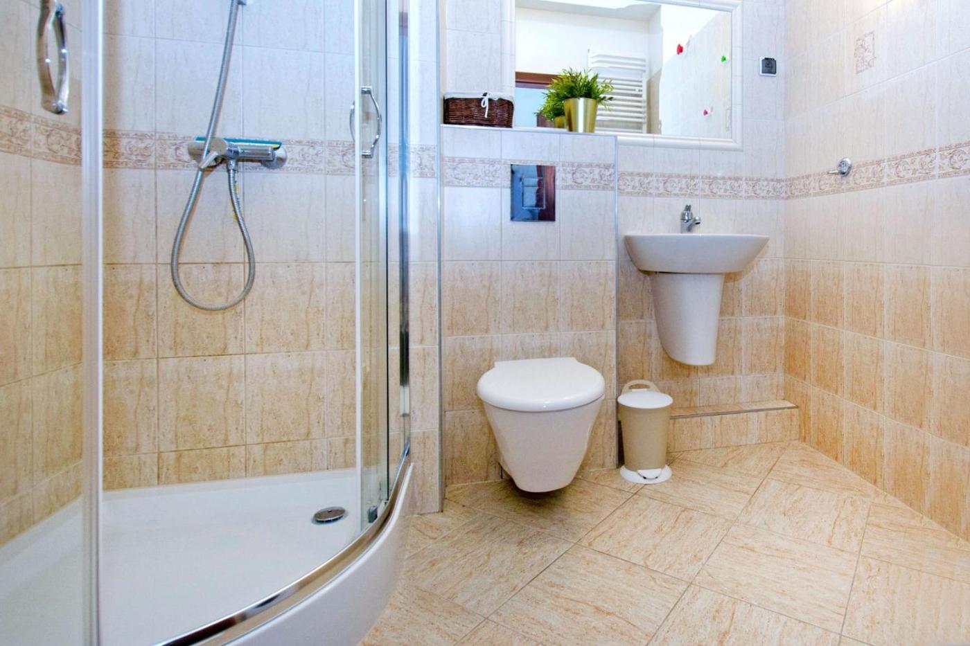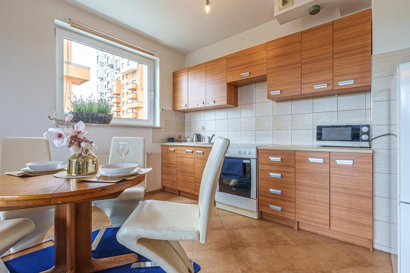 Apartament z 1 sypialnią. This apartment consists of 1 living room, 1 separate bedroom and 1 bathroom with a walk-in shower and a hairdryer. In the well-fitted kitchenette, guests will find a stovetop, a refrigerator, kitchenware and an oven. Featuring a balcony with garden views, this apartment also provides soundproof walls and a flat-screen TV. The unit offers 2 beds. Apartament - 4 osobowy. Powierzchnia pokoju ok.: 40 mkw.